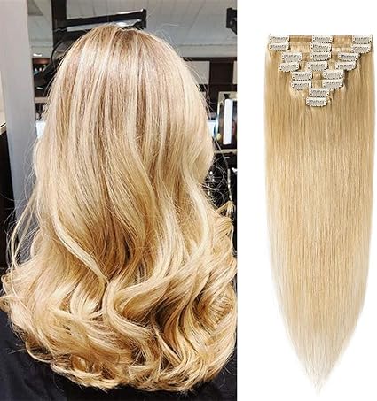 22inch Remy Hair Extension Clip In 24 Natural Blonde Real Human Hair Extensions Basic Thickness 75g Amazon Co Uk Beauty